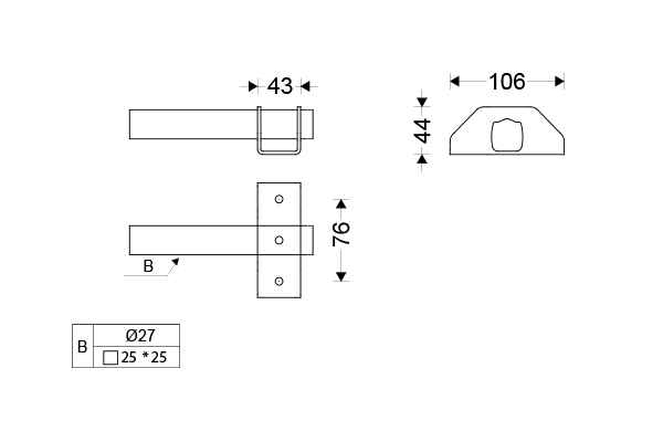 POLARIS pole and rectangular hollow bracket for 2.5cm-diameter poles