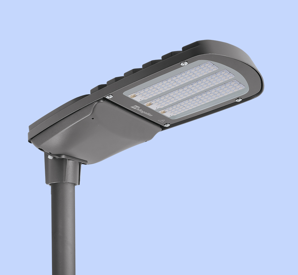 HELIUS M street light is Megalite state of the art design suitable for street, roadway, and urban light applications. High pressure die-cast aluminum body, and high ingress protection (IP66) are among the highlights of this luminaire.